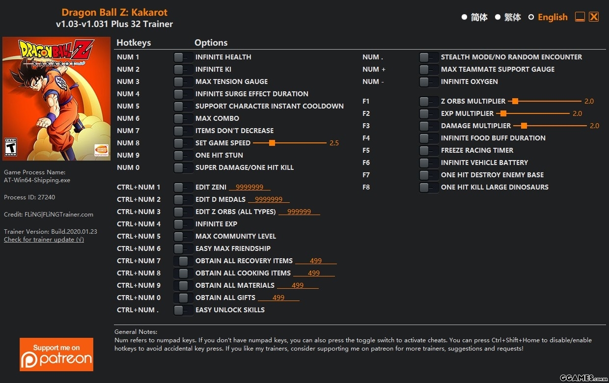 DRAGON BALL Z: KAKAROT - TRAINER +32 V1.03-V1.031 {FLING}