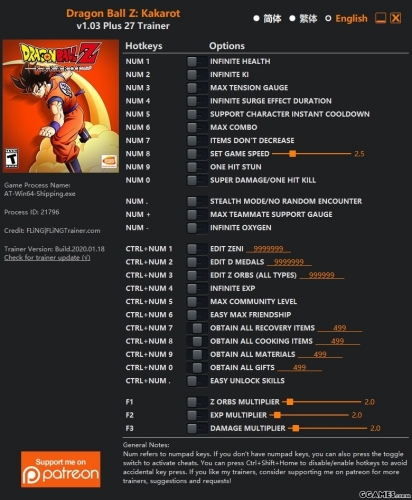 DRAGON BALL Z: KAKAROT - TRAINER +27 V1.03 {FLING}