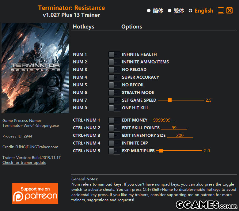 1 - “Infinite Ammo/Items” takes effect when item quantity decreases, note if item quantity decreases to 0 (e.g. if you drop/sell all of it), it will be removed from inventory.