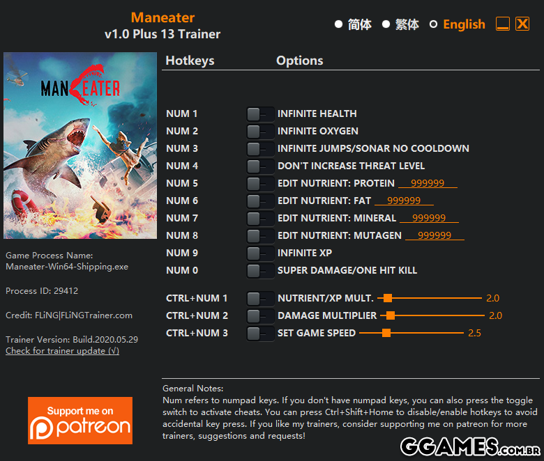 Ctrl + Num 2 - Multiplicador de Dano