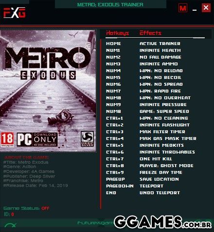 METRO EXODUS: TRAINER +20 V1.0.0.7 {FUTUREX}