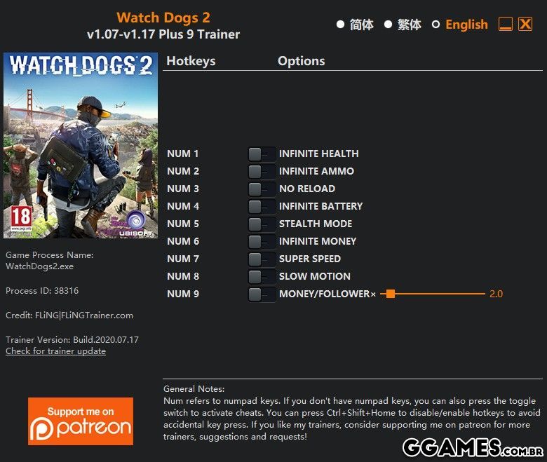 WATCH_DOGS 2: TRAINER +9 V1.07-V1.17 {FLING}