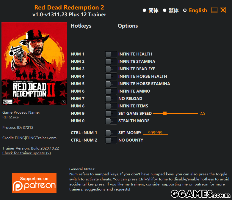 2. Fixed a problem where “Infinite Items” resets money to below 99. Updated “Set Game Speed” for better compatibility.