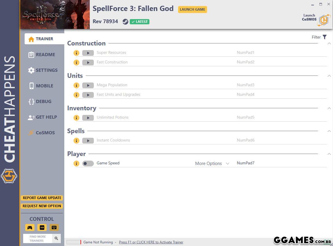 Trainer was created and tested using SKIRMISH. May or may not work with parts of some or any of the campaign missions.