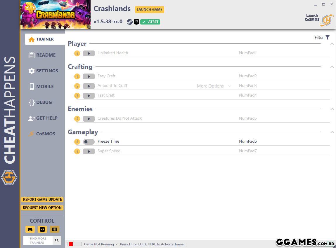 - NumPad1: Unlimited Health