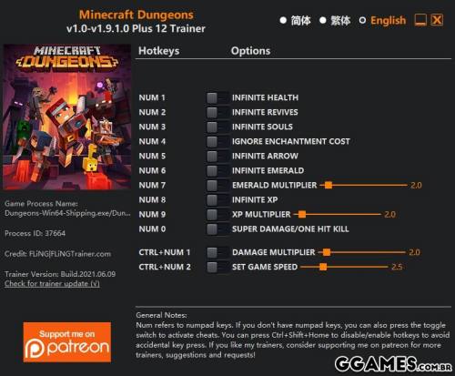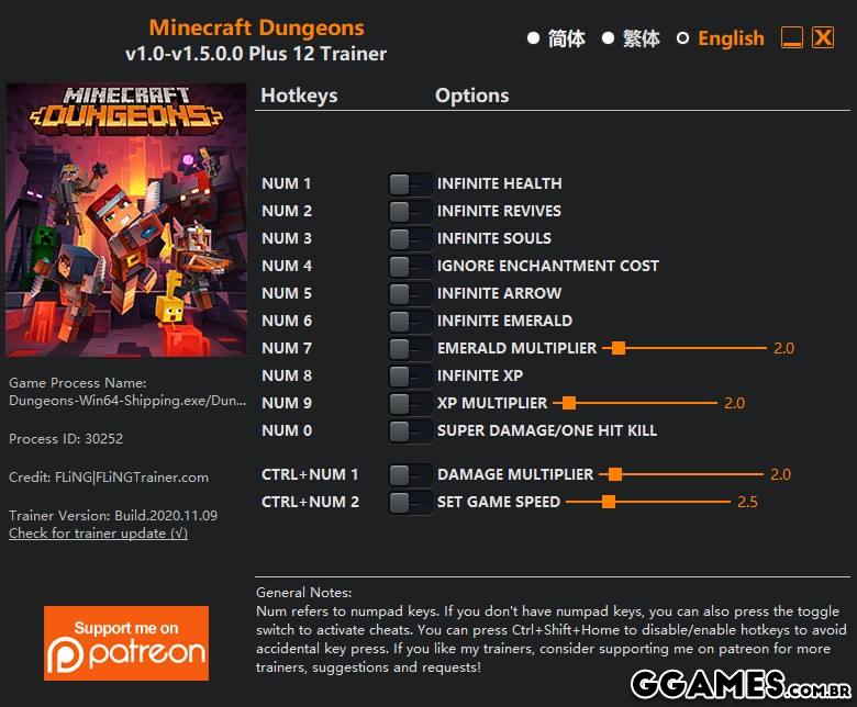 Trainer Minecraft Dungeons {FLiNG} V1.0-V1.9.1.0 plus 12