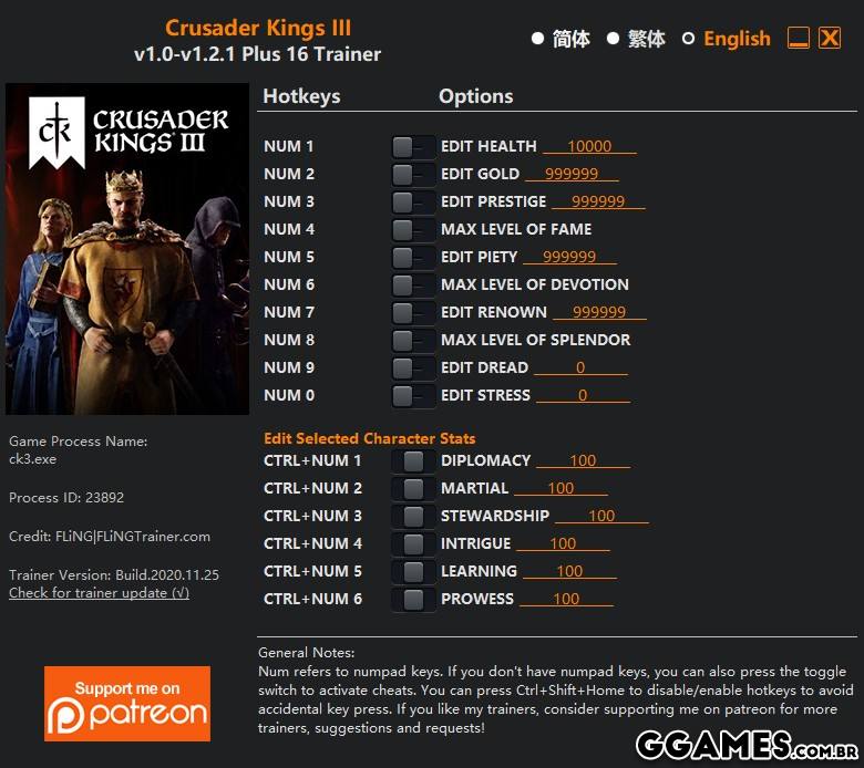 Trainer Crusader Kings 3 {FLiNG} V1.0-V1.2.0 plus 16