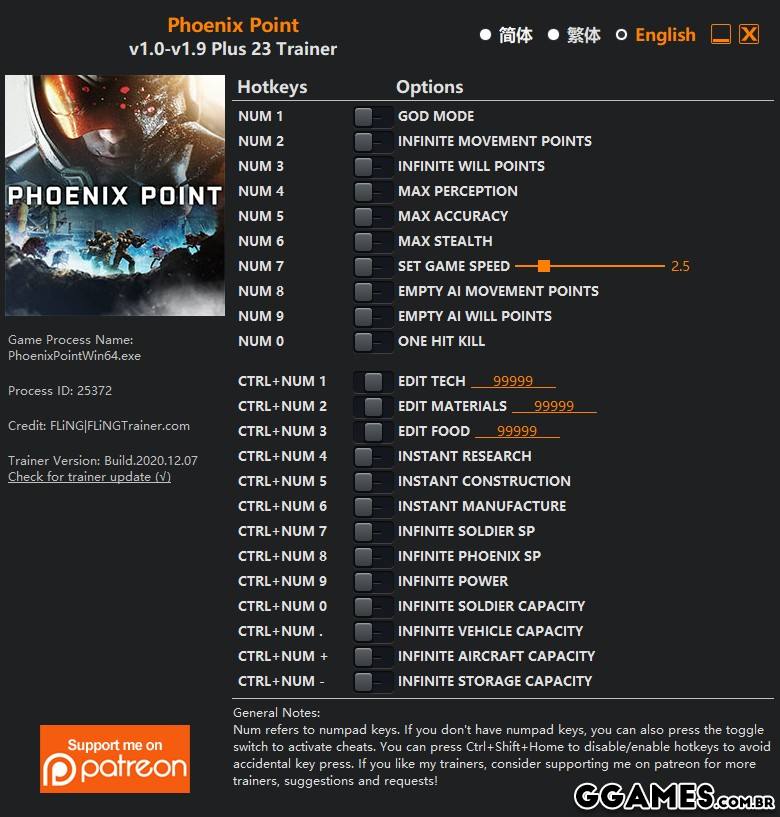 “Infinite Power”, “Infinite Soldier Capacity”, “Infinite Vehicle Capacity”, “Infinite Aircraft Capacity”, “Infinite Storage Capacity”: When activated, power on/power off any facilities in your base to update their values. These options are not permanent, values will reset after options disabled.