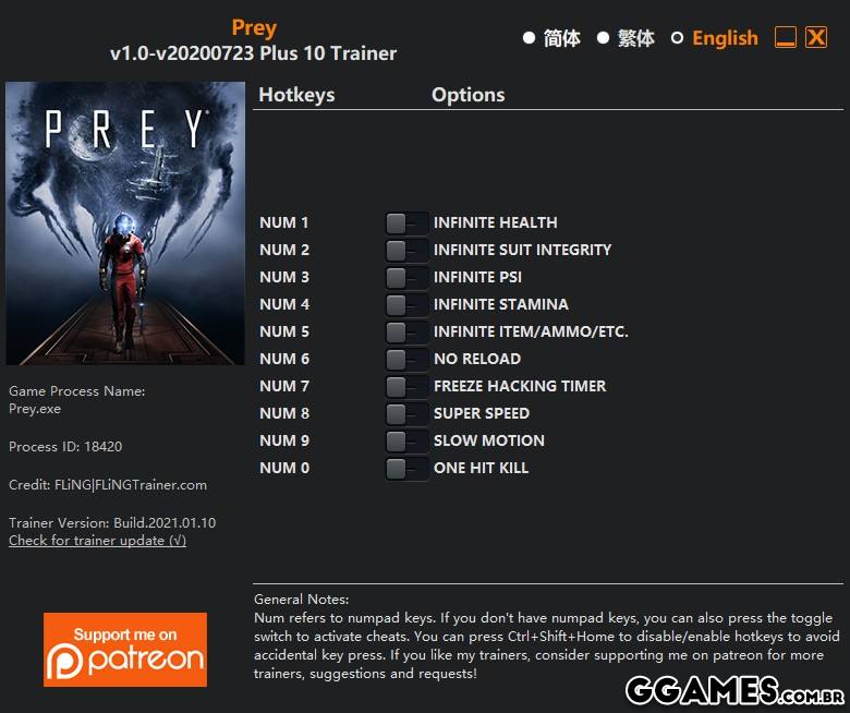 Trainer Prey {FLING} V1.0-V20200723 plus 10