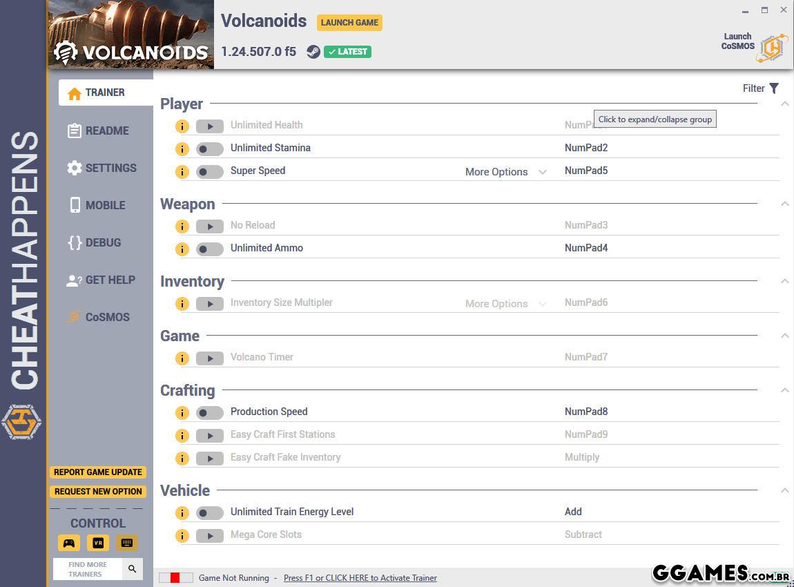 Trainer Volcanoids {CHEATHAPPENS} V1.24.507.0 F5 plus 12