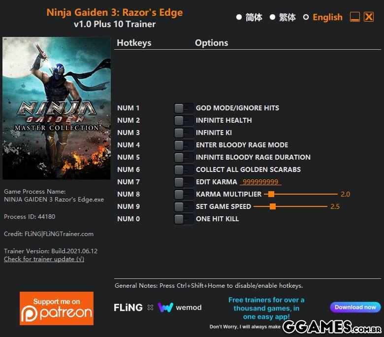“One Hit Kill”: Note during some BOSS fights, you will need to trigger some events in order to continue, killing the BOSS in one hit may cause problem and you will need to reload the last save and fight the BOSS again without this option.