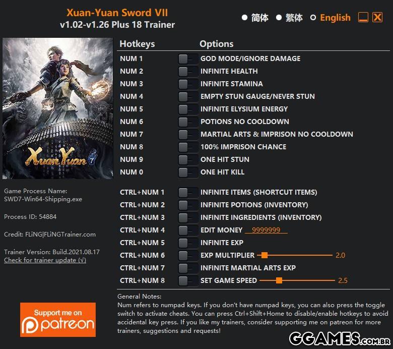 - Ctrl+Num 7 – Infinite Martial Arts Exp