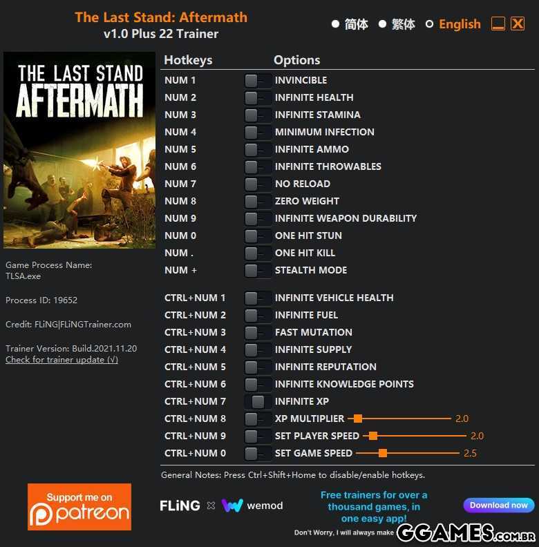 “Infinite Health”: Takes effect when you take damage. Your health will reset every time you take damage. Note your max health will decrease when infection increase, you can use “Minimum Infection” to prevent that.