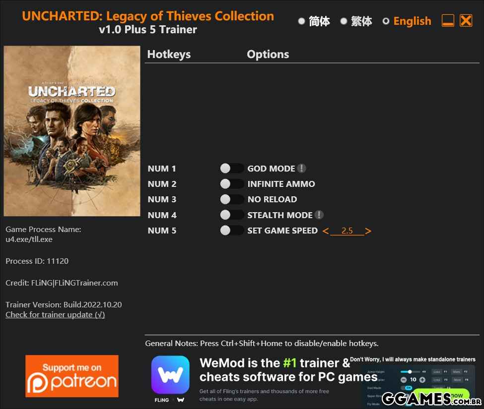 UNCHARTED: LEGACY OF THIEVES COLLECTION - TRAINER +5 V1.0 {FLING} V1.0