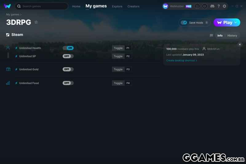 Trainer 3DRPG {MRANTIFUN / WEMOD} +4 V09.01.2022