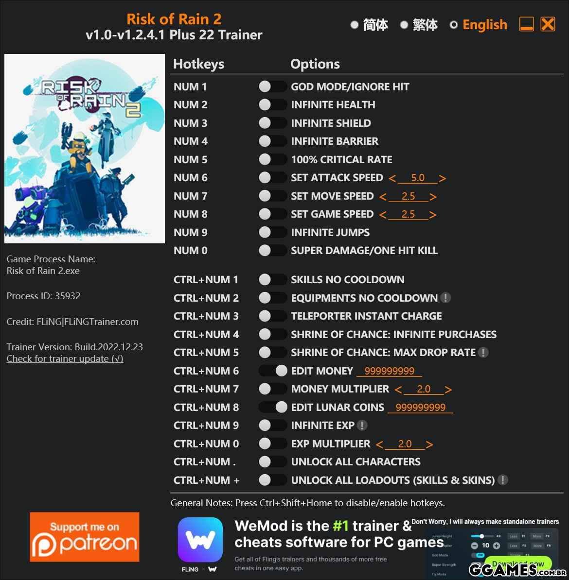 Ctrl+Num + - Unlock All Loadouts (Skills & Skins)