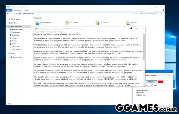 Provavelmente você conhece o recurso “Sempre visível” disponível em alguns programas. Ele permite que você mantenha a janela do programa sempre sobre as outras janelas mesmo quando ela está fora de foco.