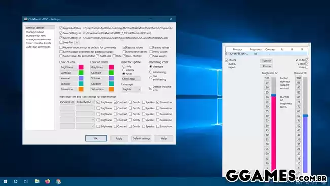 A grande maioria dos monitores de computador possuem ajuste de brilho e contraste, mas alguns modelos de notebooks não. Uma forma de contornar essa questão é usar o ClickMonitorDDC, um programa gratuito que lhe oferece uma forma prática de ajustar o brilho e o contraste do monitor usando o teclado e o mouse.