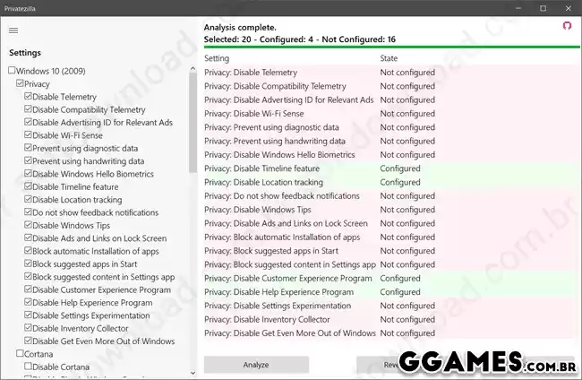 Privatezilla é uma ferramenta que permite que você execute rapidamente uma verificação de privacidade no Windows 10 e desabilite as configurações mais críticas para aumentar a sua privacidade.