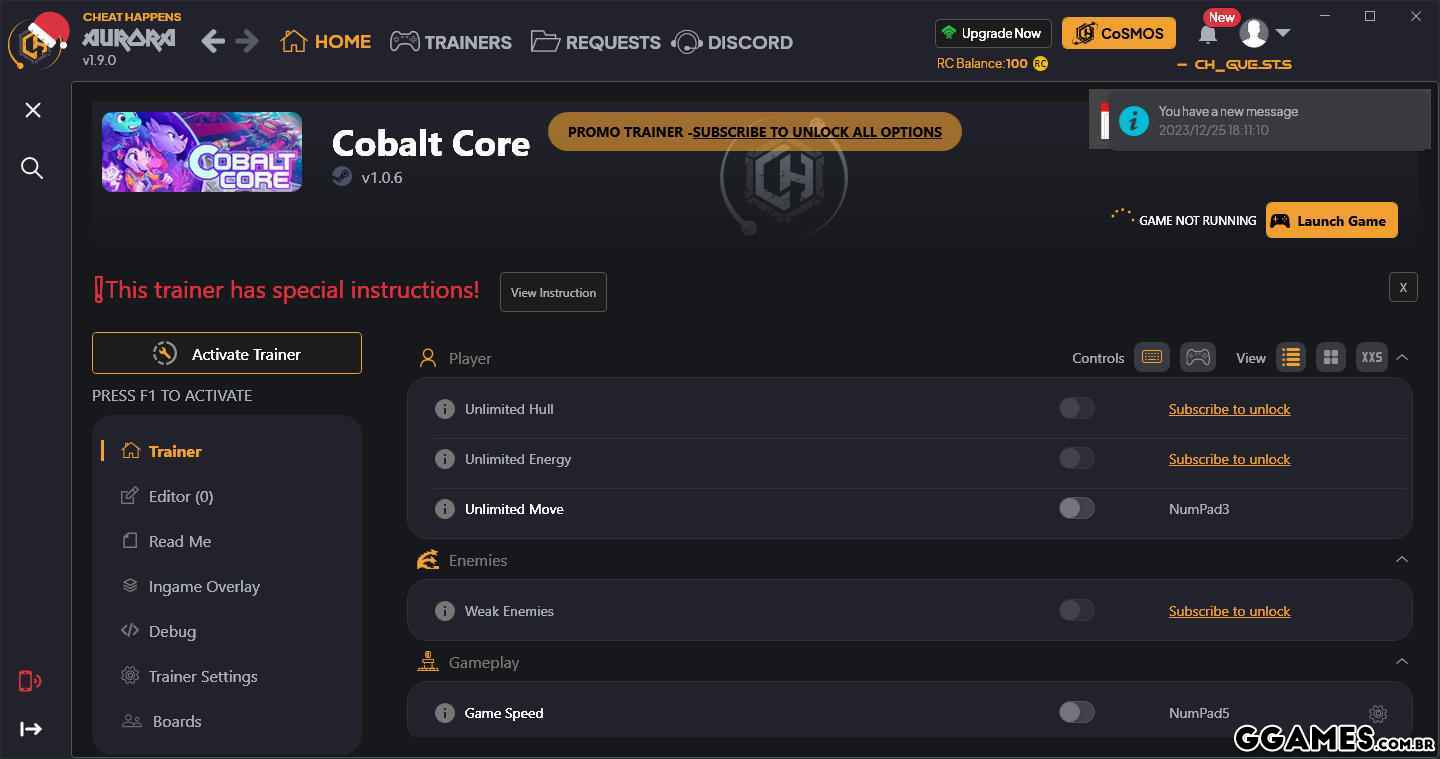 Activating this trainer