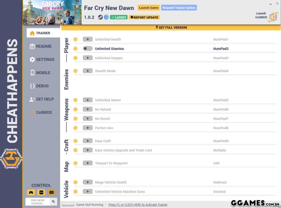 - NumPad2: Unlimited Stamina