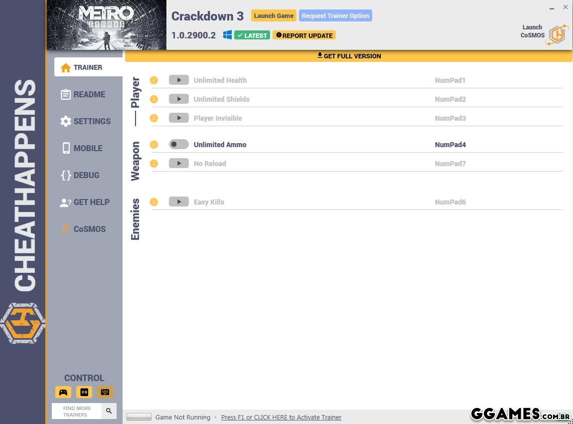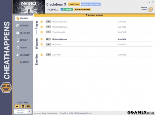 - Unlimited Health: Toggle on and the trainer will try to keep your health at 100%.