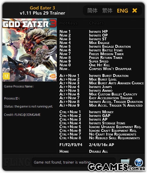 - Alt + Numpad 3 - Max Burst Arts Awaken Chance