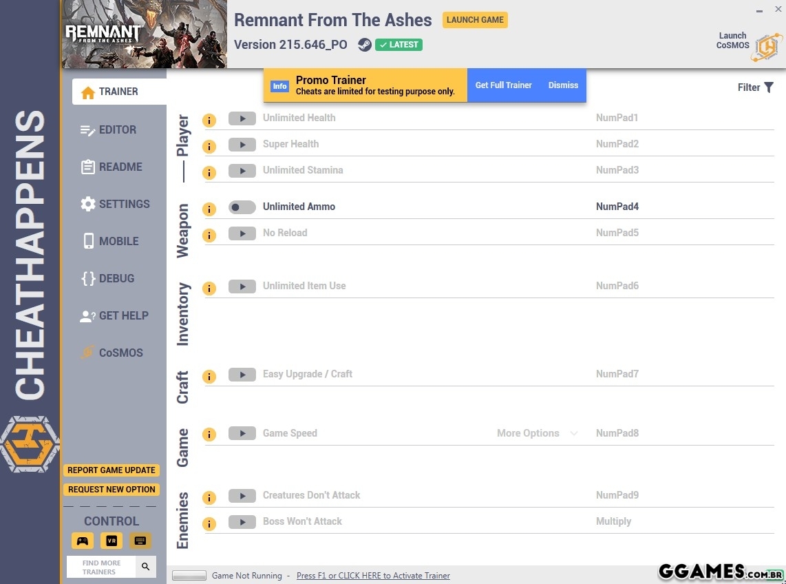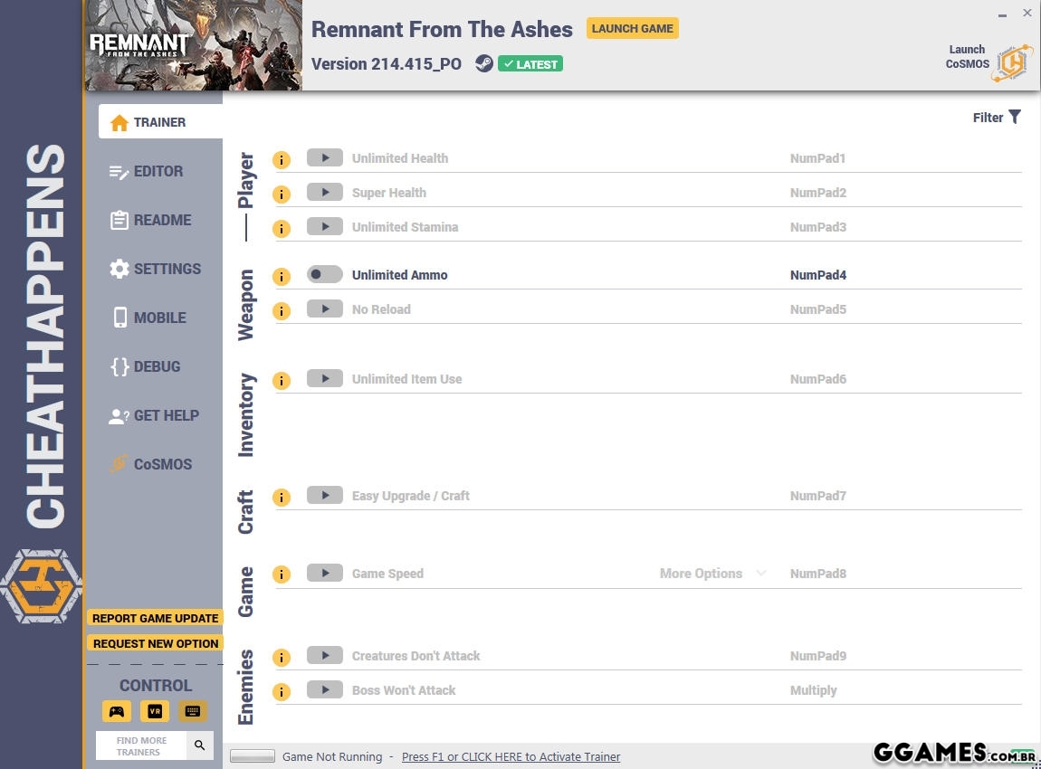 - Todas as teclas de atalho podem ser alteradas no trainer.