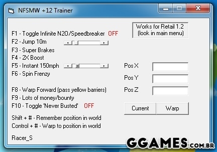 - F5 -instant speed of 150 miles per hour (you can modify in the trainer)