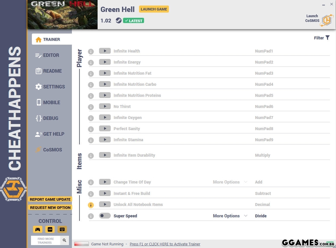NumPad1: Infinite Health