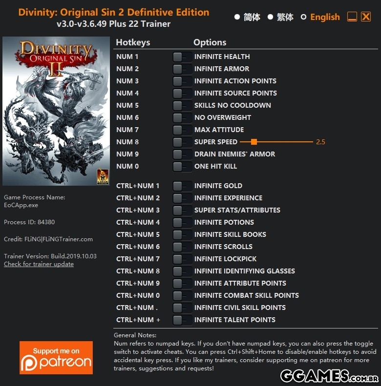 Ctrl+Num 0 – Infinite Combat Skill Points