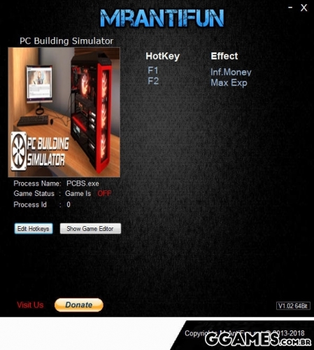 Visulizar Arquivo Trainer PC Building Simulator {MrAntiFun} Trainer options F1 - Infinite Money F2 - Infinite Experience Notice: First start game world in career mode then activate cheat. Autor 403 - Forbiddeen Enviado 26-05-2019 Categoria Cheats / Trainers / Mods