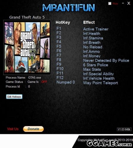 Trainer Grand Theft Auto 5 +12 {MrAntiFun}