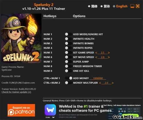“God Mode/Ignore Hit”, “Infinite Health”: Note some attacks (e.g. attack by ghost) can cause instant death, even when these options are enabled.