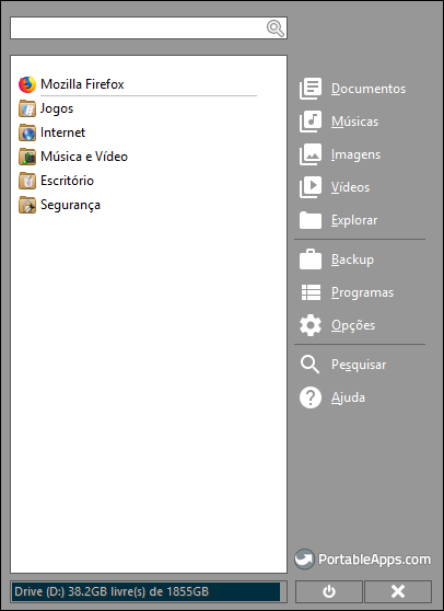 Passo 4. Em seguida, abra o seu pendrive e clique duas vezes no StarPortablesApp.exe. Ele abrirá uma espécie de “menu iniciar” com todos os programas já instalados.