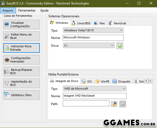 O programa oferece a opção de adicionar uma entrada no menu de boot, caso um dos sistemas operacionais tenha ficado de fora; permite também editar as opções já existentes, definindo o sistema padrão e a ordem no menu de boot; e além disso permite editar o tempo que o menu de boot permanece na tela antes da seleção do sistema.