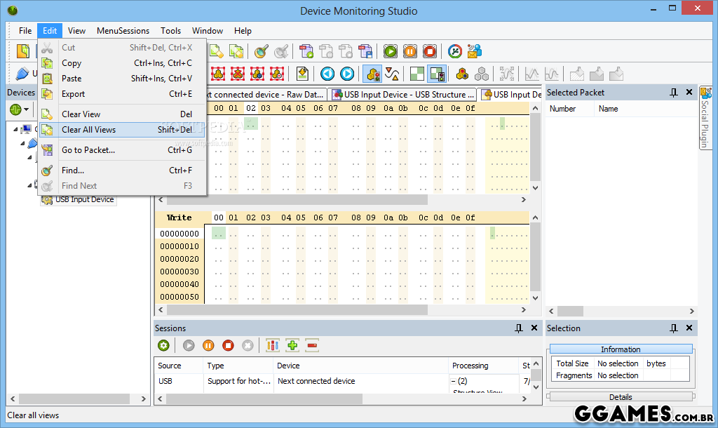 A informação capturada é exibida em três formatos diferentes: binário, hexadecimal e ASCII. É ideal para desenvolvedores de hardware e programadores dedicados a criarem programas para este tipo de dispositivos.