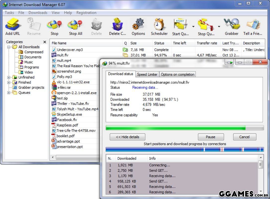 Internet Download Manager é um gerenciador completo de downloads para Windows que permite ao usuário baixar programas direto de navegadores. O programa consegue se integrar com os principais navegadores do mercado, como Internet Explorer, Firefox, Opera, Avant Browser e Google Chrome. Ele acelera a velocidade dos seus downloads em até cinco vezes. Internet Download Manager está na versão 6.38.
