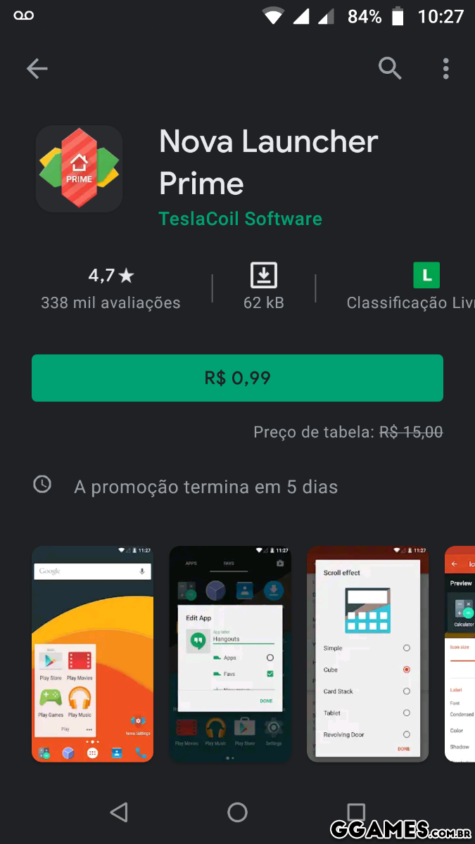 Fala galera do Games, pra quem curti Personalização e Launcher, vai gostar dessa noticia a empresa desenvolvedora, a TeslaCoil Software, baixou até o fim de ano o preço da licença da Nova Launcher Prime para Android por apenas R$ 0,99, O preço original para o launcher, no Brasil, é de R$ 15 e a promoção significa desconto de 93,4% ou seja um super desconto quase de graça, vale lembrar que esse preço significa apenas a licença Premium do aplicativo então se você tiver a versão da Nova Launcher Free, comprando essa licença terá todos os recursos da versão Premium desbloqueada dentro do aplicativo. Veja aqui ->