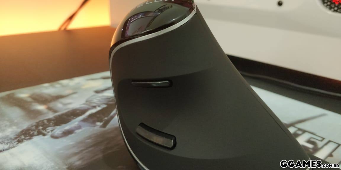 Por essa razão e esse medo acabei arriscando em comprar um mouse vertical, um preço justo para tentar reduzir a fagida no pulso. O que me chamou nesse modelo em especial é que a marca possuí um modelo específico para GAMER, além de outras duas variáveis, uma sem fio e outra normal com fio. Eu escolhi a versão sem fio para evitar mais bagunça na mesa.