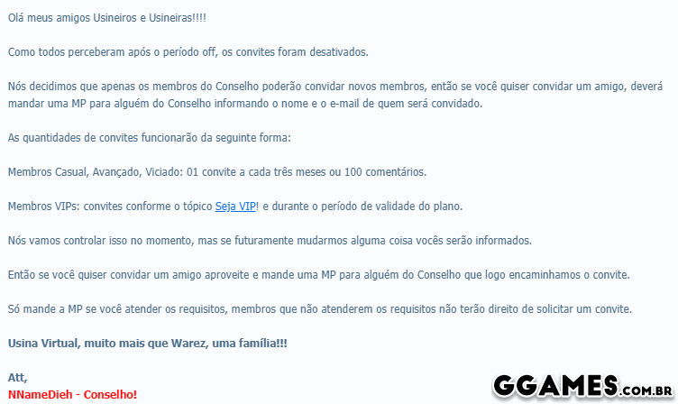 Convite do UV liberado. Se deseja participar é so procurar um membro e pedir que ele fale com o conselho do forum passando nome e email da pessoa a ser convidada.