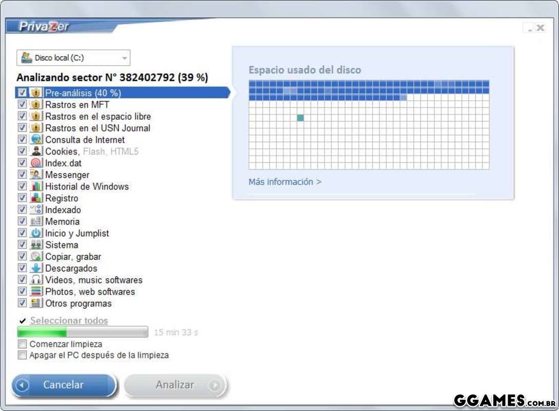O PrivaZer é capaz de buscar por arquivos deste tipo em todas as unidades de disco conectadas em seu computador, garantindo assim uma pesquisa ampla para deixar tudo limpo e funcionando bem.